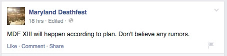 Но больше всего моих подписчиков и друзей в соцсетях волнуется, кажется, ежегодный метал-фестиваля «Maryland Deathfest» — многие интересуются, отменят ли его, можно ли еще купить билеты, и пр.