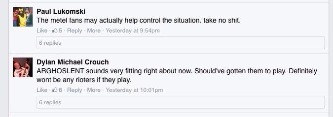 Как реагируют поклонники хэви-метала на происходящее в Балтиморе? Мягко сказать, не очень.
