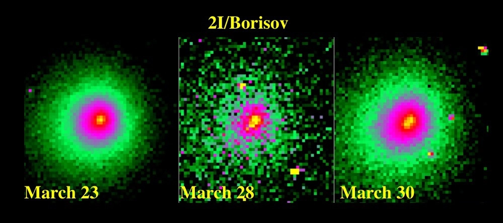 Как сообщил ресурс The Astronomer’s Telegram, о разделении ядра кометы свидетельствуют снимки, сделанные в конце марта. Если 23 числа 2I/Borisov имела привычный вид, то 28-го с телом произошло некое событие, похоже на выброс фрагмента. Уже 30 марта заметны два отдельных источника отраженного света, расстояние между которыми может достигать 180 километров.