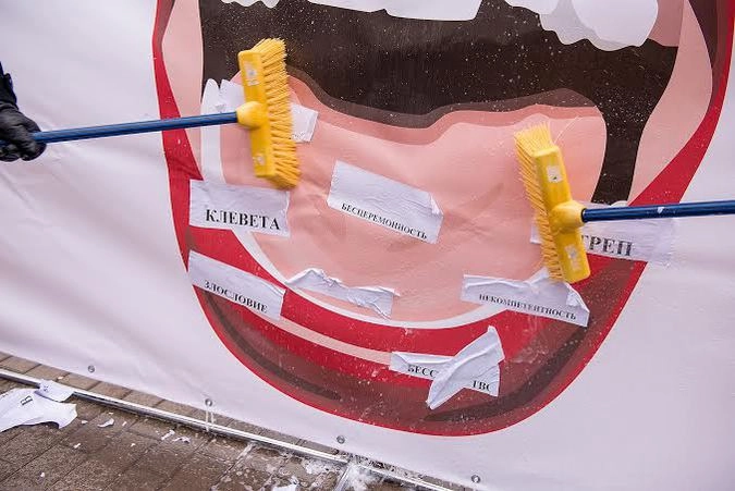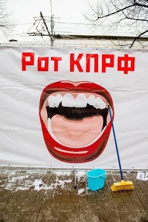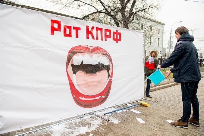 В ходе акции, получившей название «Молодая Гвардия вымоет рот КПРФ», неподалеку от главного офиса партии в Москве активисты установили большую конструкцию рта. На нее были прикреплены стикеры с характерными для Алимовой выражениями: «ложь», «клевета», «грубость», «циничность», «злословие», «вздор», «треп», «обман», «наговор», «невежество». В ходе акции около десяти молодогвардейцев «отмыли» «Рот КПРФ» от этих слов моющим средством и щеткой.