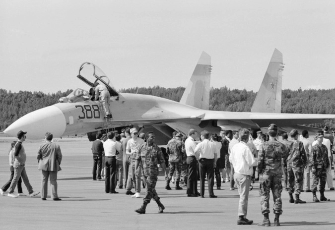 США. Оклахома. 1990 г. V Международный авиакосмический салон «Аэроспейс Америка — 90». Советский истребитель-перехватчик СУ-27
