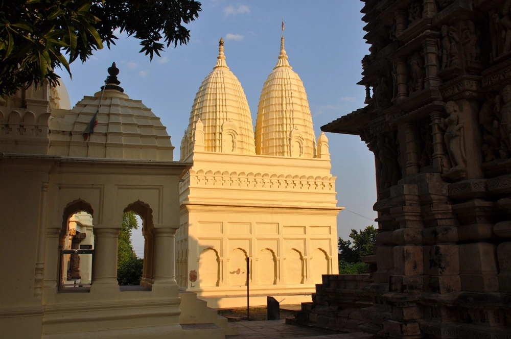 Теперь переместимся в другую часть городка и посмотрим храмы Восточной группы. По сравнению с Западной, эта группа совсем небольшая. Зато эти храмы находятся на территории действующего джайнистского монастыря. Джайнизм — это ещё одна религия Индии, менее распространённая, чем индуизм, но также очень древняя. Если храмы Западной группы — индуистские, то храмы Восточной группы — джайнистские.