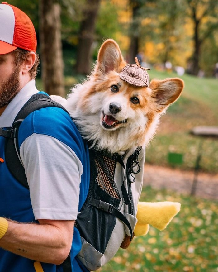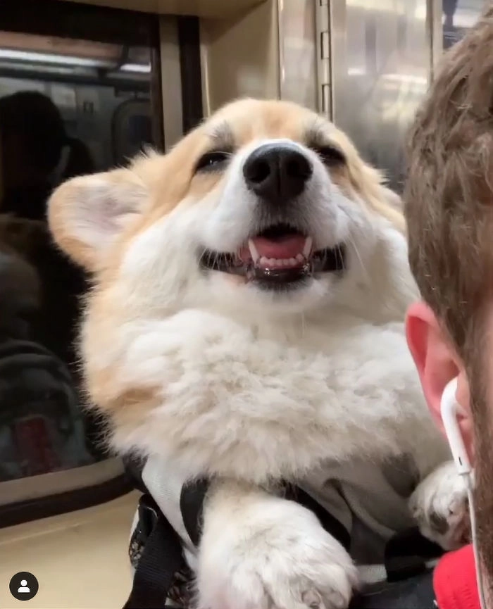 Милый корги, передвигающийся по метро в рюкзаке, стал звездой Instagram