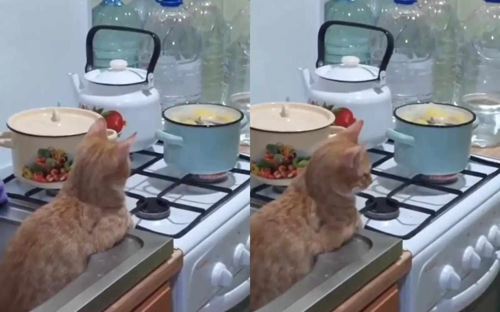 Милый рыжий помогатор: кот вызвался следить за варкой картофеля
