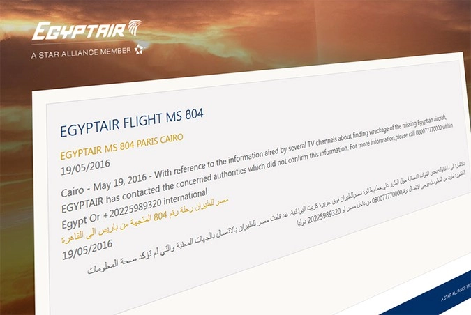 Министерство гражданской авиации Египта не подтверждает обнаружение обломков самолёта А320 компании EgyptAir в Средиземном море. Об этом сообщила авиакомпания EgyptAir.