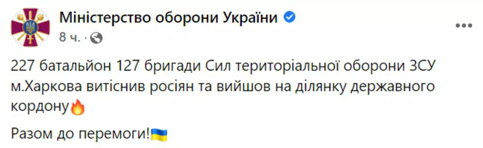 Российские войска отошли от Харькова. Тем самым они позволили украинской армии занять позиции на границе с РФ. Об этом сообщает пресс-служба Министерства обороны Украины в социальных сетях.