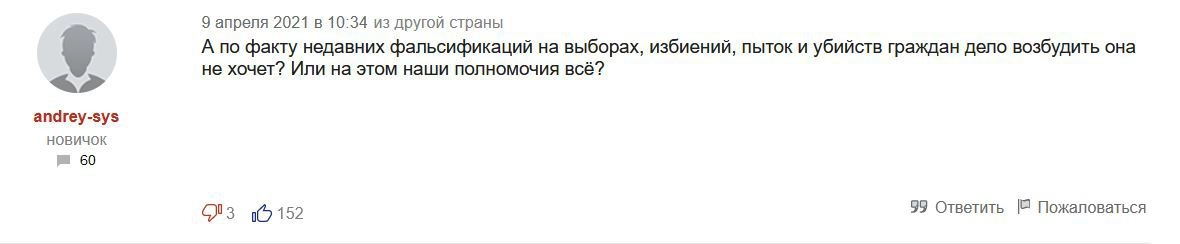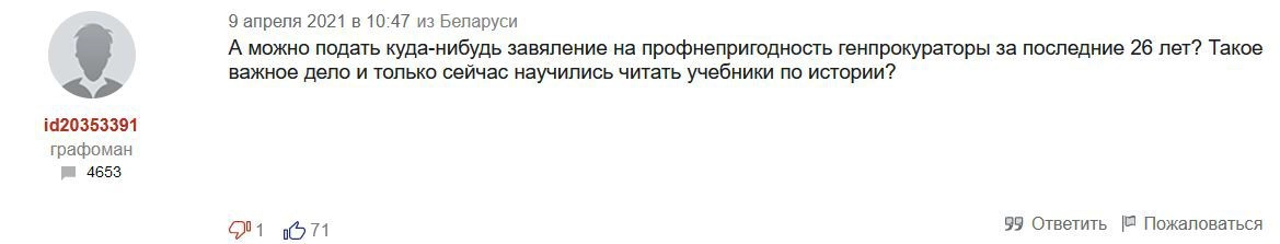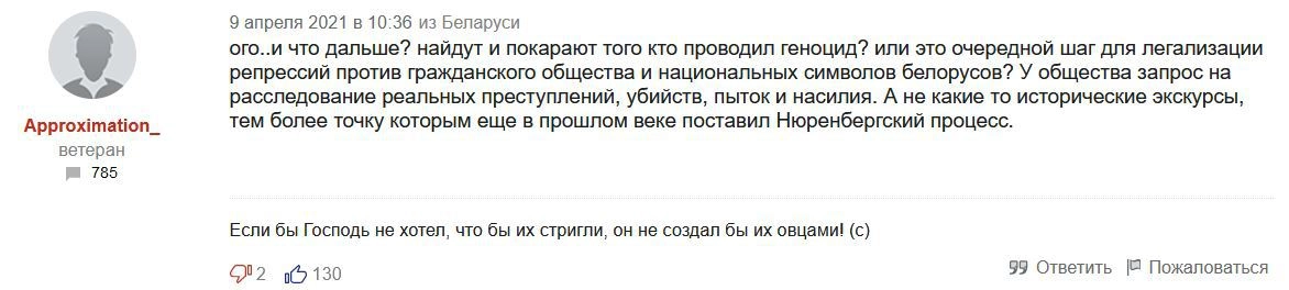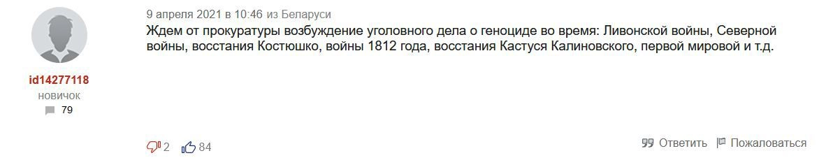 Пользователей Сети удивляет то, что генпрокуратура вспомнила о геноциде только сейчас. Помимо этого, их интересует, когда начнется расследование по событиям 2020—2021 годов, когда в стране проходили массовые протесты.