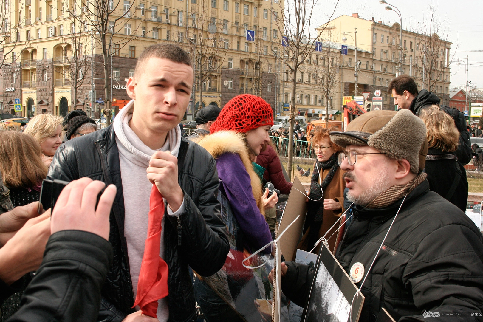 Такая "разношёрстность" публики не лучшим образом повлияла на мирные настроения собравшихся. Ещё до начала марша, когда все эти люди собрались на "пушке", обсуждения крымских и других событий нередко заканчивались взаимным потоком оскорблений.
