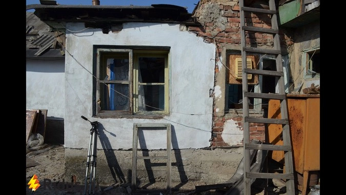 Этой ночью стреляли по всему Донецку. Трудовские — запад, а следующий адрес — на севере, в Киевском районе. Мина проломила крышу частного дома. Хозяйка не хочет сниматься, ей не до того. Зато не прочь поговорить мужчины, помогающие ей.