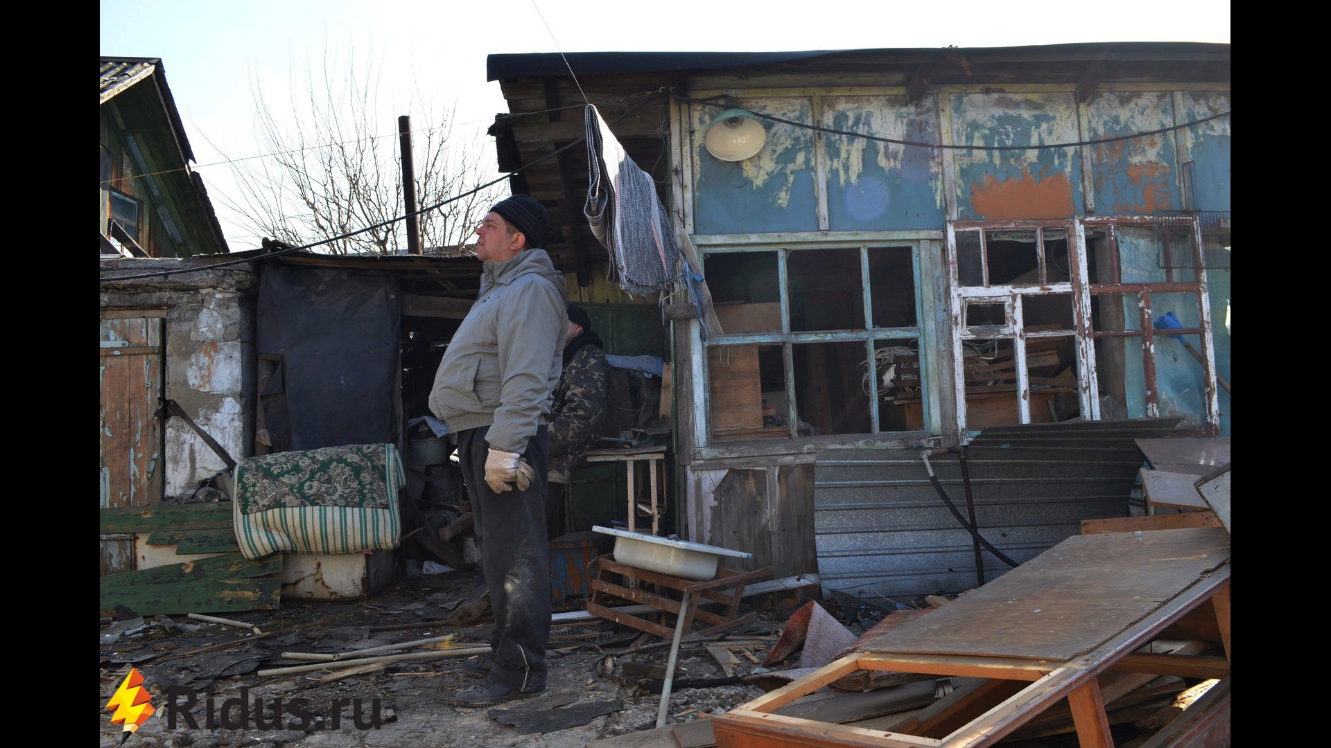 Живет. Первый адрес попадания — улица Шестакова, 106. Мина попала не в дом, а в огород, так что хозяин, несмотря на предпенсионный возраст представляющийся Толиком, радуется: всего лишь побило окна и перебило провода. Но провода уже починили.