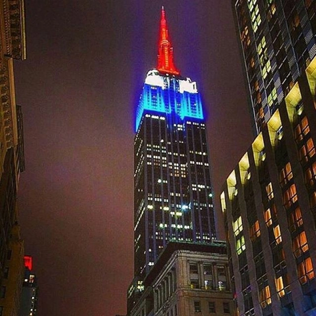 Подсветку сменили на сине-бело-красную, например, в Сити-Холл Сан-Франциско. Приобрело такой окрас и здание Сиднейской оперы, а также башня «Восточная жемчужина» в Шанхае и расположенная в Торонто самая высокая в мире телебашня. Шпиль построенного на месте разрушенных в 2001 году башен-близнецов на Манхэттэне здания Всемирного торгового центра 1 в Нью-Йорке и верхние этажи Эмпайр Стейт Билдинг также окрасились французским триколором. В те же тона облачились строение сената Мексики и статуя Христа-Искупителя в Рио-де-Жанейро.