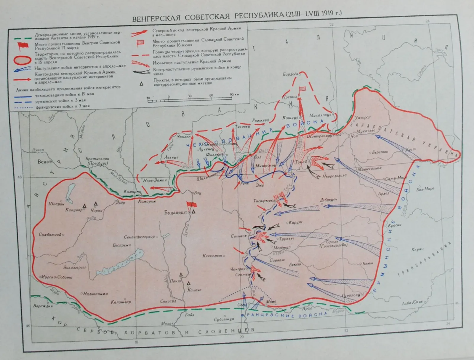 Впрочем, этот поход обошёлся им дорого — если при выступлении в Словакию русский батальон насчитывал 742 бойца, то через две недели боёв с чехословацкой армией в строю осталось лишь 80 человек. В последнем провальном июльском наступлении красных мадьяр 1-й интернациональный полк потерял более половины личного состава.