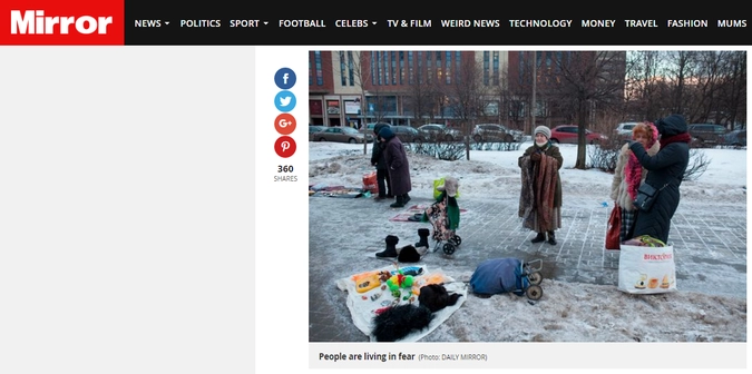«Люди живут в страхе», — говорится в подписи к одной из фотографий с масленицы, на которой изображены прохожие и уличные торговцы.