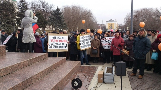 Лозунги на прошедшем митинге снова те же. Это, прежде всего, призыв сменить власть. Не обошлось, само собой, и без упоминания Михаила Столярова, астраханского градоначальника, недавно арестованного по подозрению в коррупции. Собравшиеся скандировали: "Жулье в - тюрьму, астраханцам - честного мэра!", "Нам нужны честные выборы!", "Астраханцы за Олега Шеина!"...