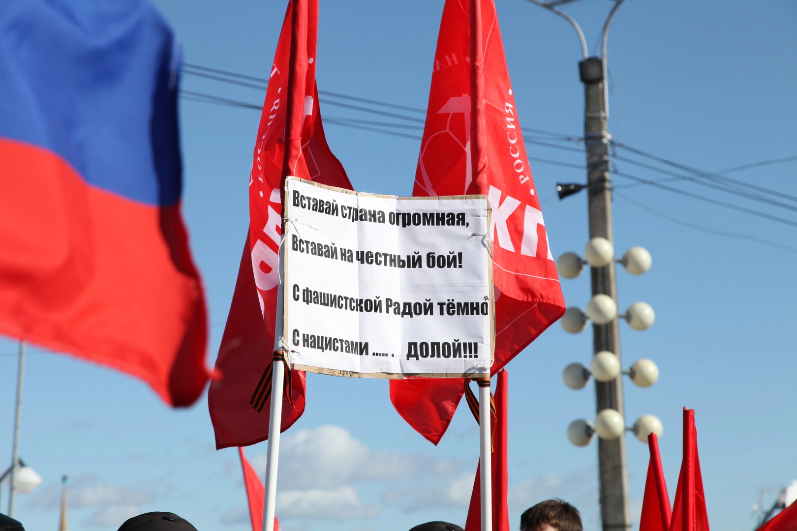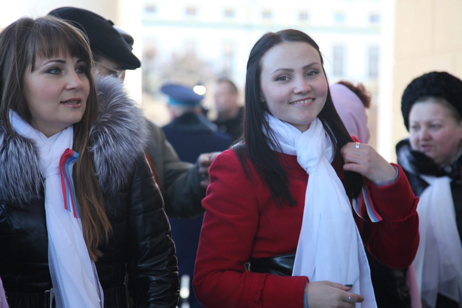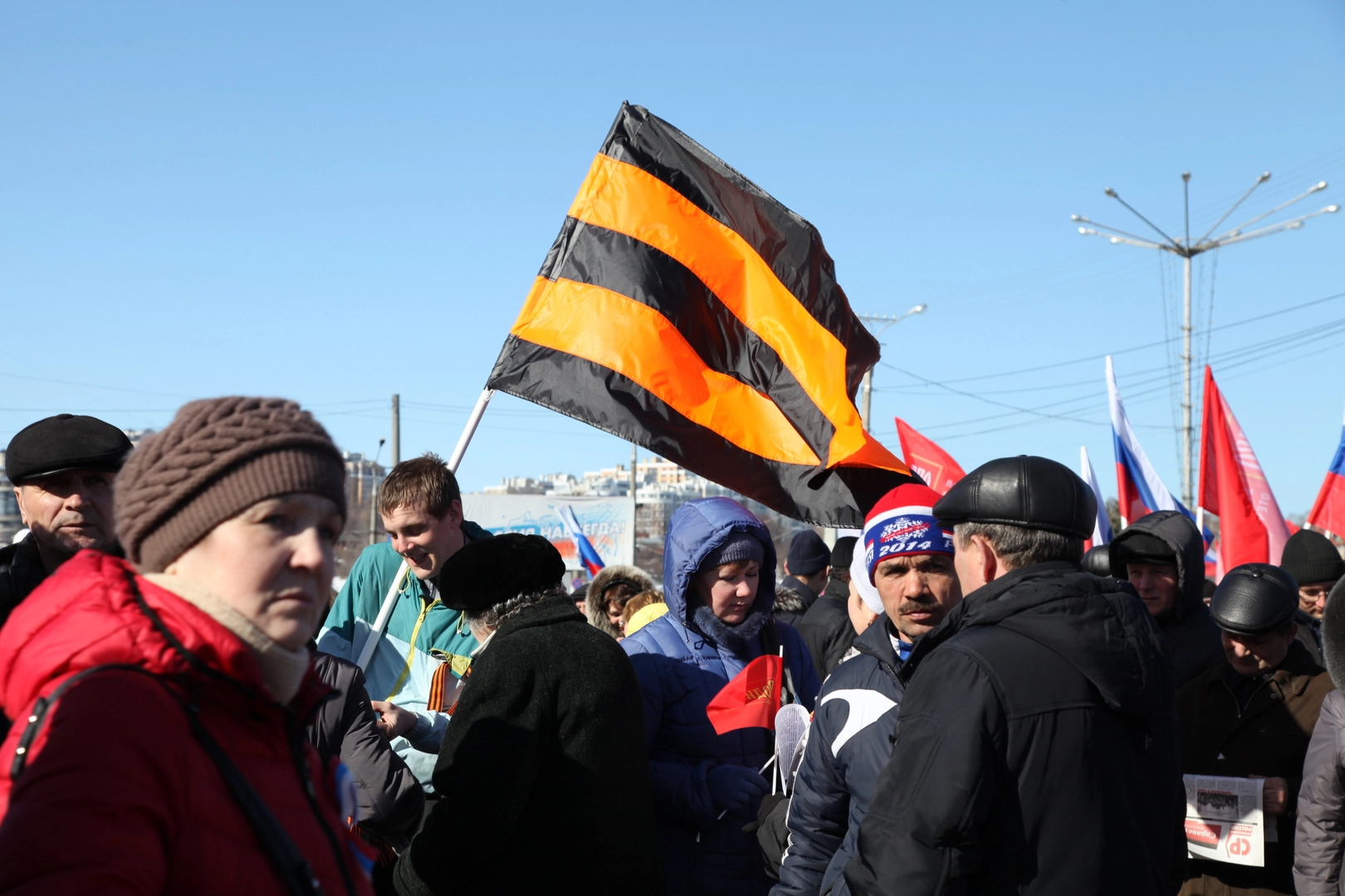 У многих из тех, кто пришел сегодня на Красную площадь, есть родственники на Украине. А жизнь близких в новых условиях, не может их не волновать. Поэтому антифашистские лозунги стали одними из главных на прошедшем сегодня митинге. Многие из пришедших были с георгиевскими ленточками. Участники поддержали решение крымского парламента о воссоединении с Россией.
