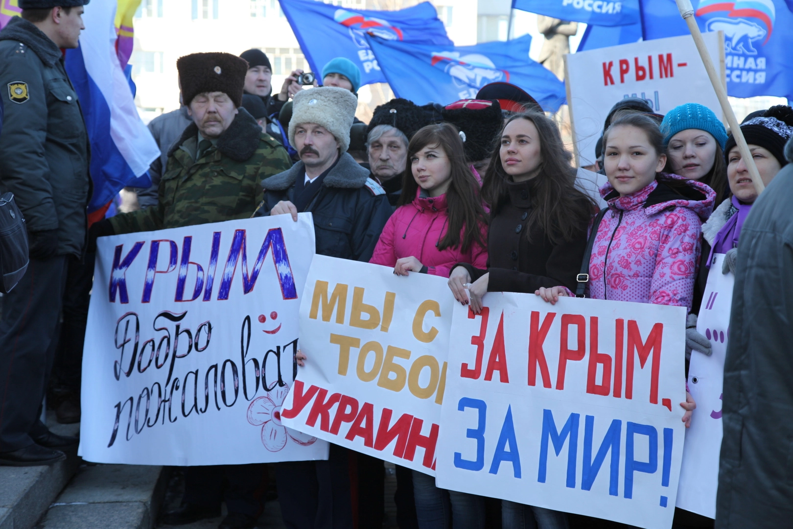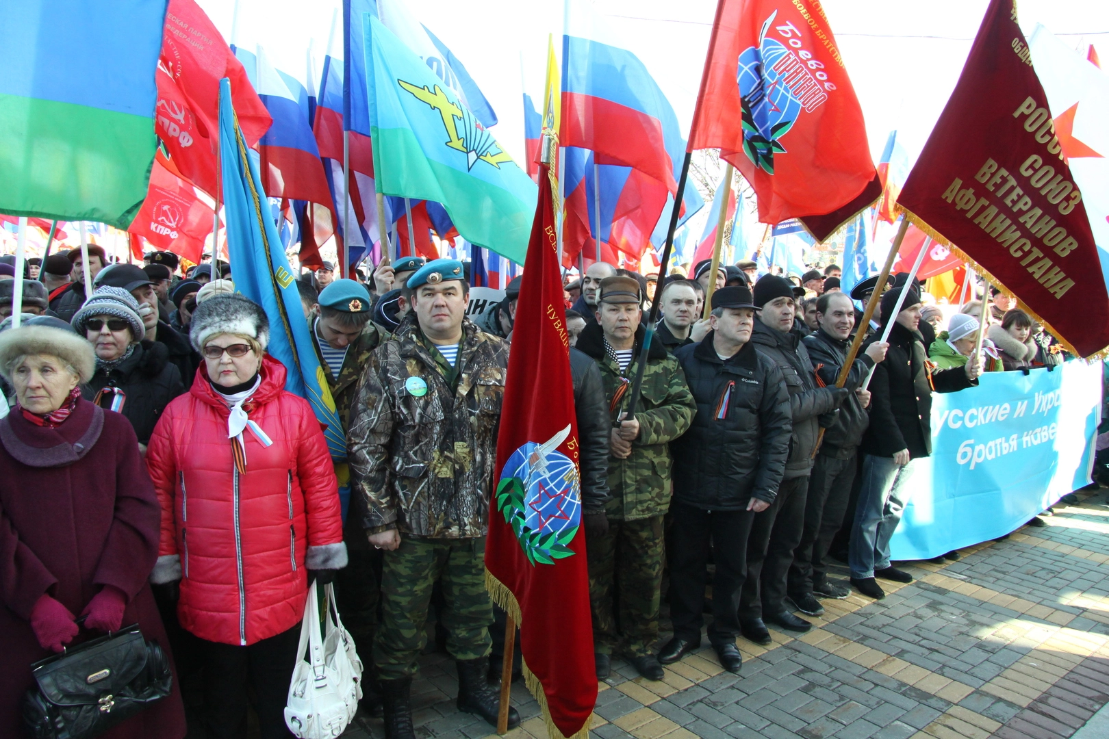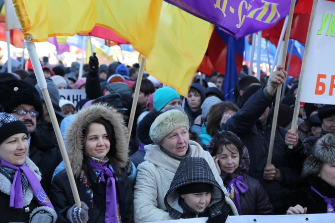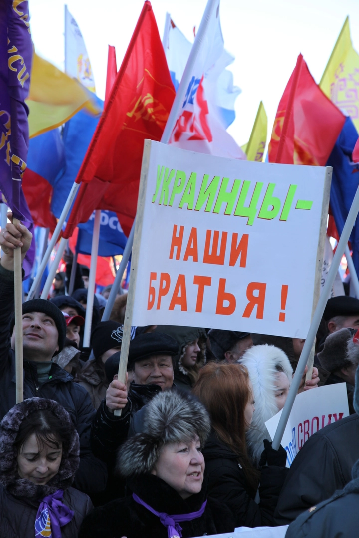 - Многие наши семьи имеют сплетенные воедино украинские и русские корни. Поэтому мы не можем бросить в беде своих братьев. Мы переживаем за судьбу Украины. Мы готовы поддержать близкий нам народ в сложной ситуации и оказать посильную помощь, – скандировали собравшиеся.