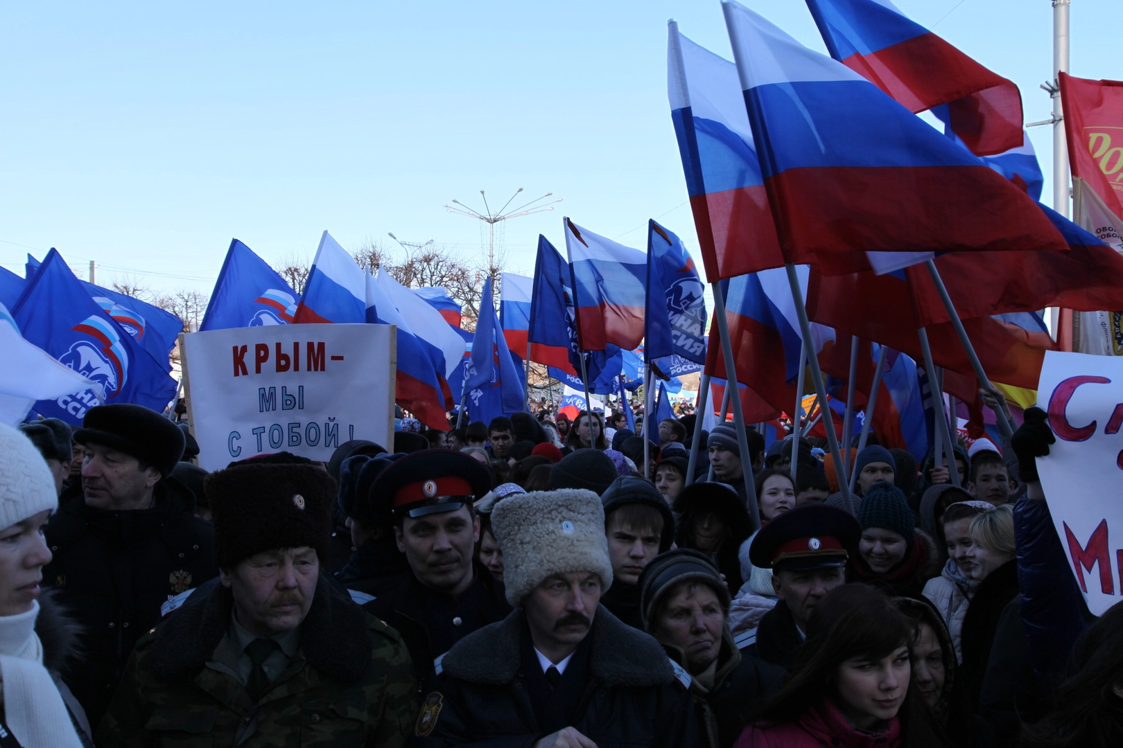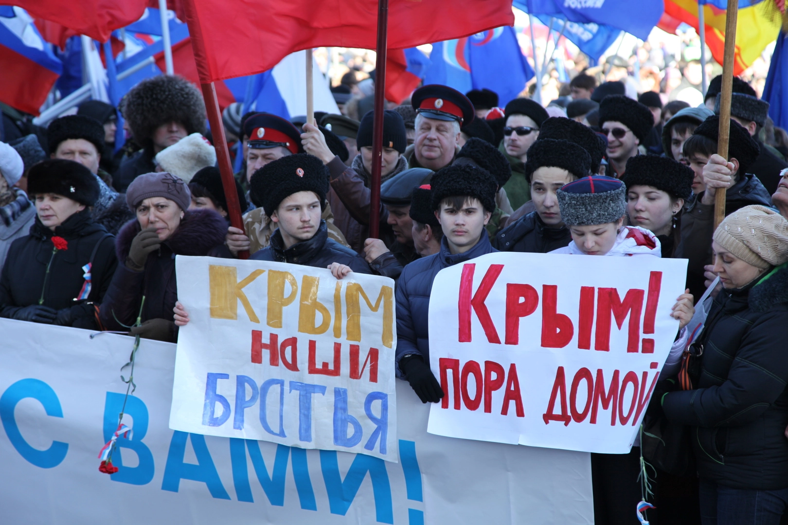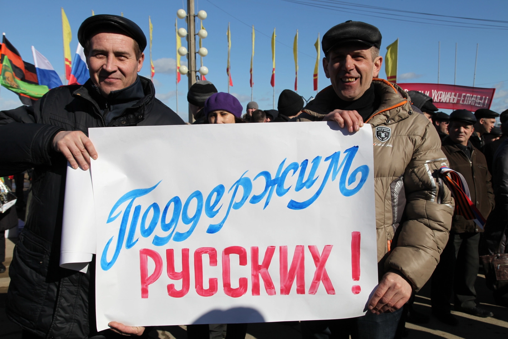 - Многие наши семьи имеют сплетенные воедино украинские и русские корни. Поэтому мы не можем бросить в беде своих братьев. Мы переживаем за судьбу Украины. Мы готовы поддержать близкий нам народ в сложной ситуации и оказать посильную помощь, – скандировали собравшиеся.