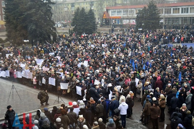 Митингующие собрались на площади Ленина, расположенной в самом центре города, и поддержали совместное заявление глав ДНР и ЛНР, предусматривающее введение внешнего управления на предприятиях украинской юрисдикции, а также прекращение поставок на Украину угля в том случае, если Киев не прекратит транспортную блокаду Донбасса к 1 марта.