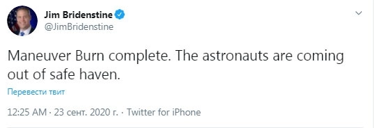 Позднее глава NASA Джеймс Брайденстайн написал в Twitter, что маневр успешно завершился и космонавты «покидают свое убежище».