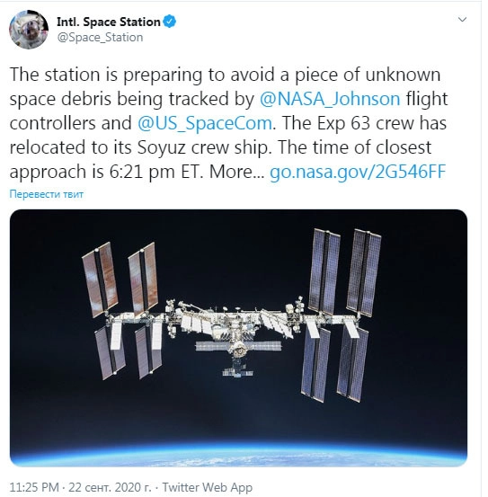 Перед этим NASA сообщило, что диспетчеры Центра управления полетами в Хьюстоне при содействии Космического командования США отслеживают неизвестный кусок космического мусора, который должен пройти в пределах нескольких километров от МКС.
