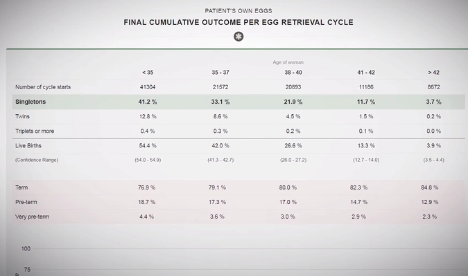 Как мы писали ранее, повторные попытки могут зависеть от разных факторов, в том числе и от возраста женщины. Чтобы не быть голословным, приведем статистику Общества репродуктивной медицины США за 2014 год, согласно которой для девушек младше 35 лет шанс родить ребенка (именно родить, а не просто забеременеть) при выполнении одного цикла ЭКО равняется 54%, что считается хорошим показателем, отмечают специалисты.
