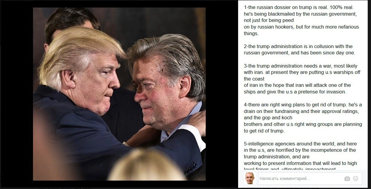 • Спецслужбы всего мира, включая американские, в шоке от некомпетентности администрации Трампа. Кроме того, они вместе работают над тем, чтобы представить миру неопровержимую информацию, которая приведет к импичменту.