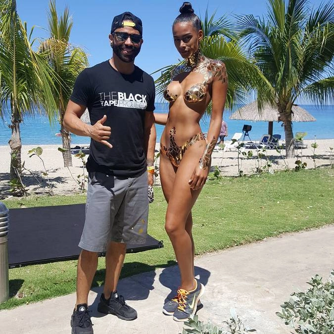 Разгадка оказалось неожиданной — выяснилось, что на тело модели наклеена изолента. Необычный «купальный костюм» создал дизайнер Джоэл Альварез. Видеоролик, так шокировавший Интернет, снимали на Гаити для рекламной кампании американского модного дома Black Tape Project. Это уже не первый эксперимент дизайнера с изолентой, раньше он использовал чёрные полоски скотча, потом разделил их на осколки и покрасил в золотой цвет. Творчество Джоэля можно оценить в Инстаграм-аккаунте, на который подписано уже 167 тысяч человек.