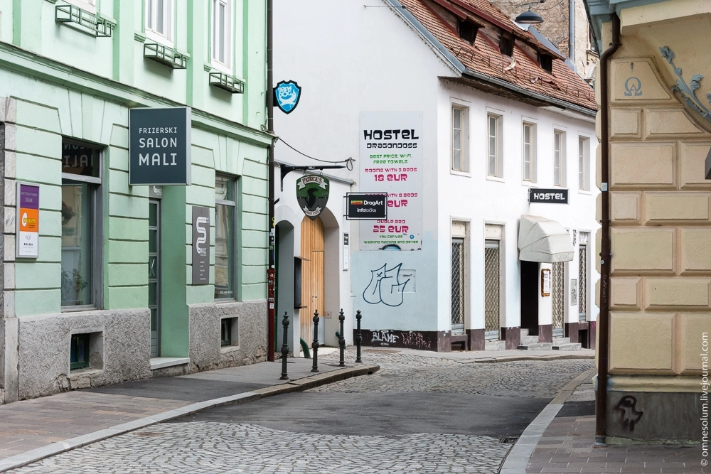 Около полудня я приземлился в маленьком аэропорту Любляны и сел в шаттл до центра города за 9 евро. Можно было доехать и на автобусе, но шаттл был быстрее и довёз меня прямо до моего хостела. Бросил вещи и отправился в туристический центр за своей карточкой. По дороге уже начал рассматривать город.