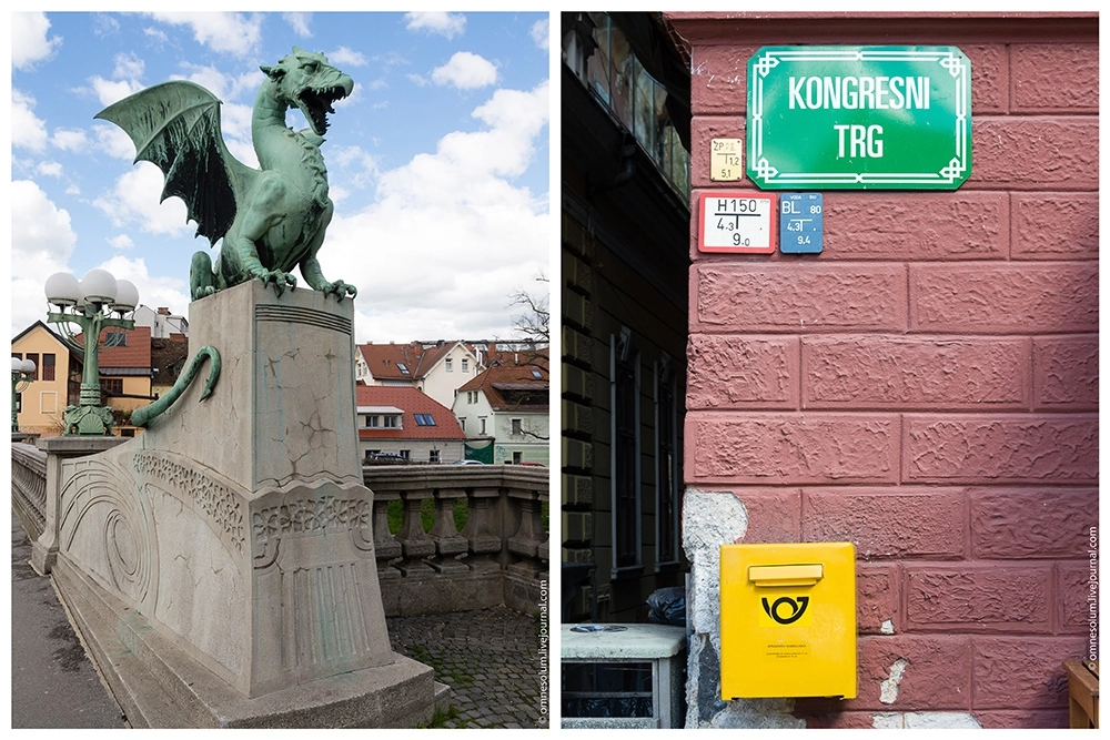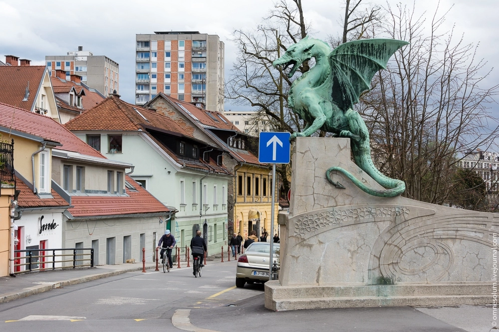 Я собирался начать свой день с водной экскурсии по речке, но в тот день Любляница оказалась слишком полноводной, а течение слишком сильным, и лодки не ходили. Пришлось менять планы и отправляться исследовать город с земли. Начать решил с недалеко расположенного Драконьего моста.