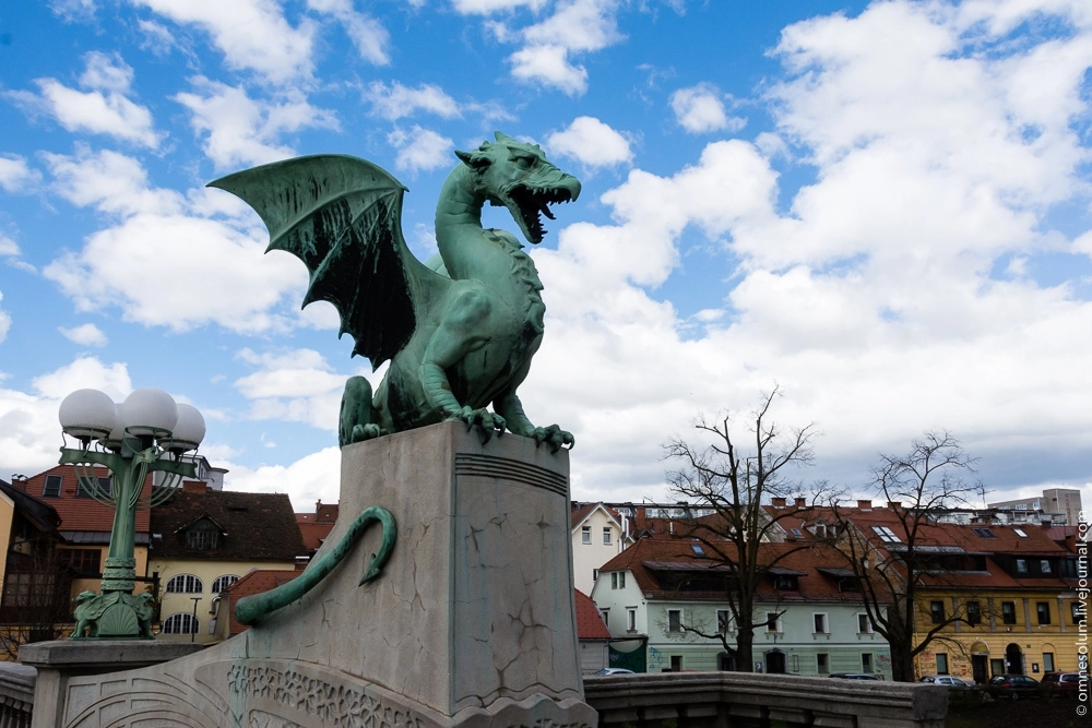 Драконий мост по праву считается символом Любляны. Построенный из железобетона в 1900—1901 годах, мост поражает четырьмя реалистичными статуями драконов из кованого металла. Согласно легенде, возвращавшийся с Золотым Руном Ясон убил здесь чудище, нагонявшее страх на всю округу. Теперь изображение дракона можно встретить по всему городу, в том числе и на канализационных люках.