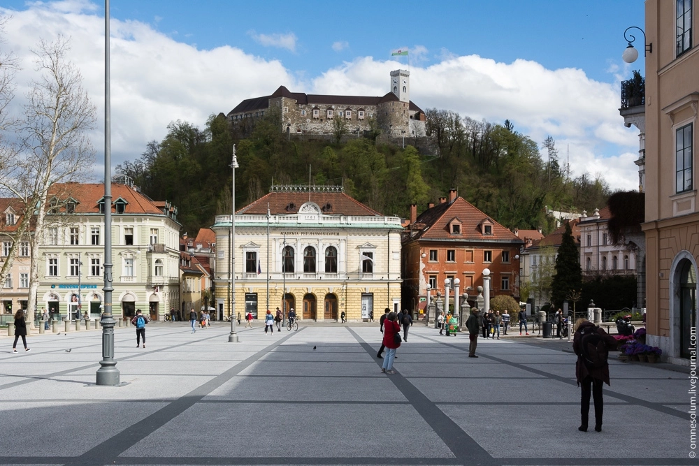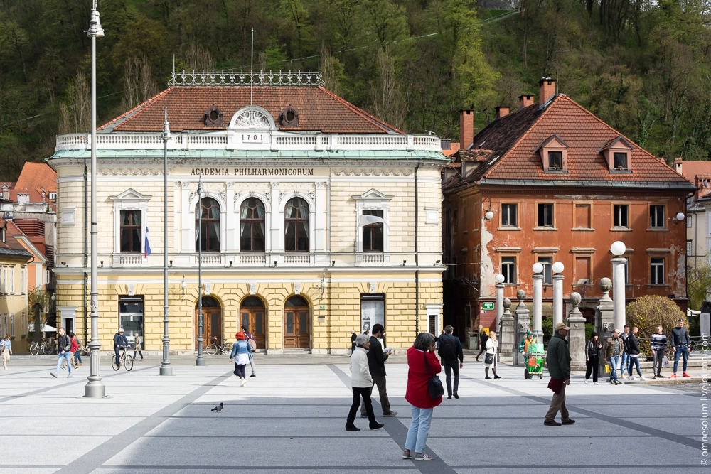 В восточном конце площади расположилось красивейшее здание Словенской филармонии, а справа — резиденция старейшего словенского издательства «Словенске матице».