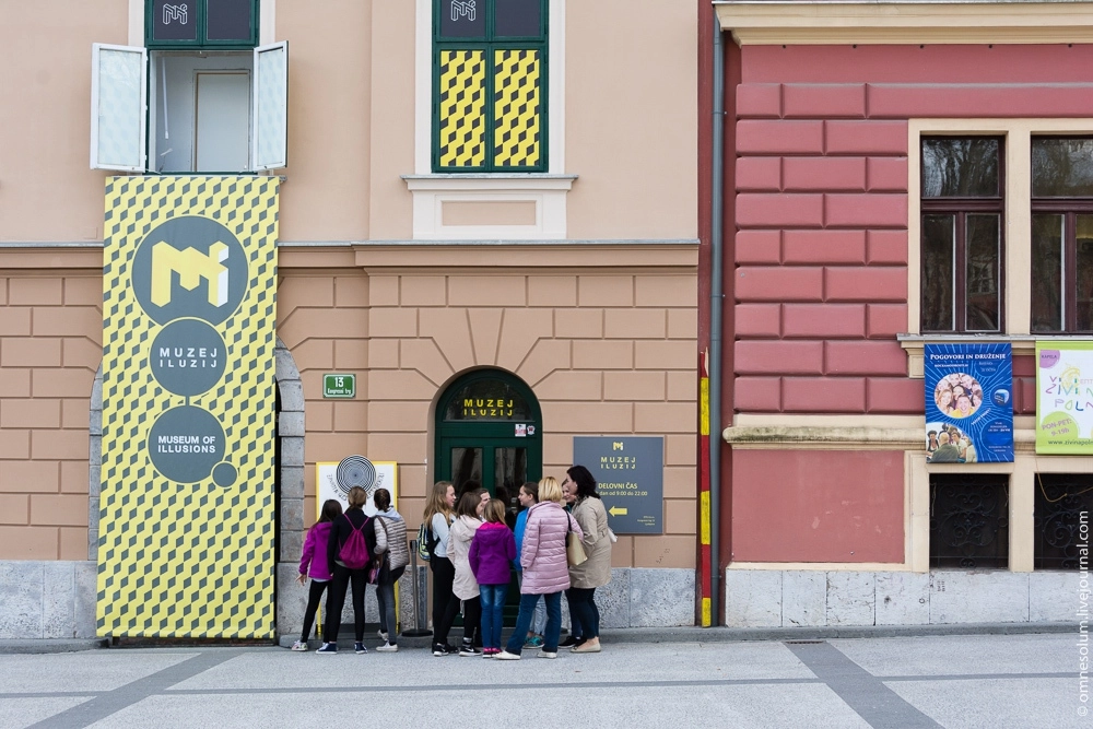 Здесь же находится Словенский университет, а рядом с ним — Музей иллюзий, вход в который бесплатен вместе с моей картой. Заходим!