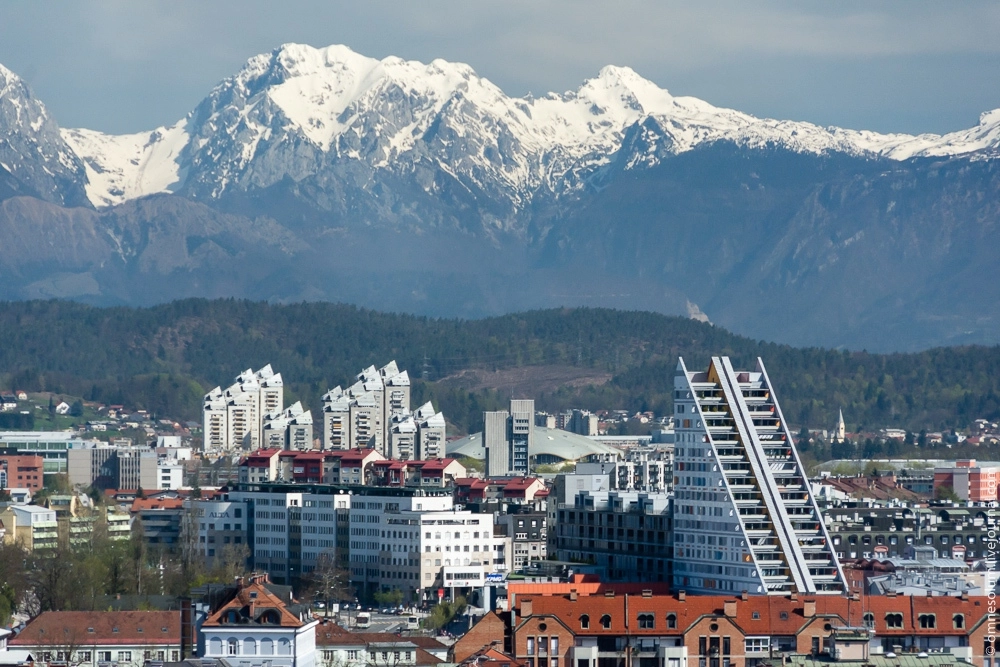 Вот она какая — Любляна. Жемчужина в окружение Альпийских горных вершин.