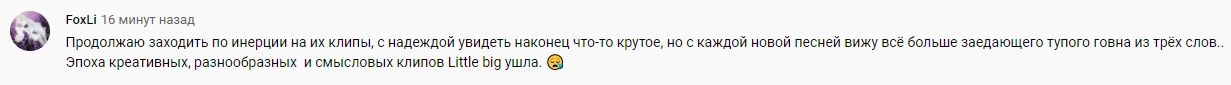 В Сети многие написали, что разочарованы новой работой Little Big, и что в последнее время группе не хватает смелости и экспериментов, которыми прежде они поражали своих поклонников.