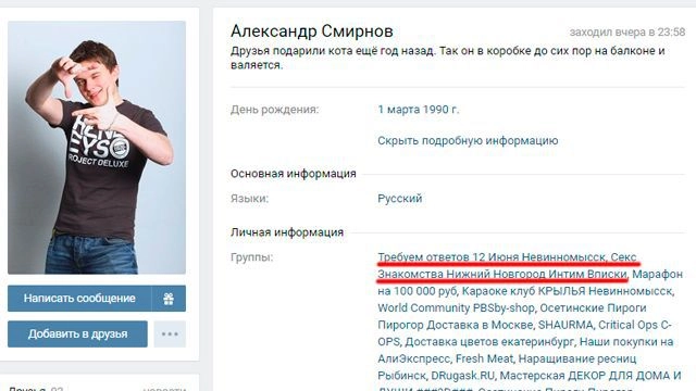 Александр Смирнов, организатор группы, посвященной митингу 12 июня в Невинномыске, состоит в группах «Секс Знакомства Самара Интим Вписки Досуг БДСМ», «Fetish & BDSM Фетиш и БДСМ в Беларуси».