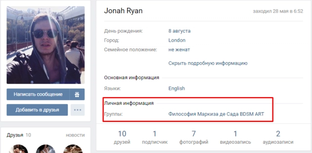 А Иван Копытов, организатор митинга в Майкопе, скрывается в Сети под псевдонимом Jonah Ryan: в разделе «личная информация» указано: «Философия маркиза де Сада — BDSM Art».