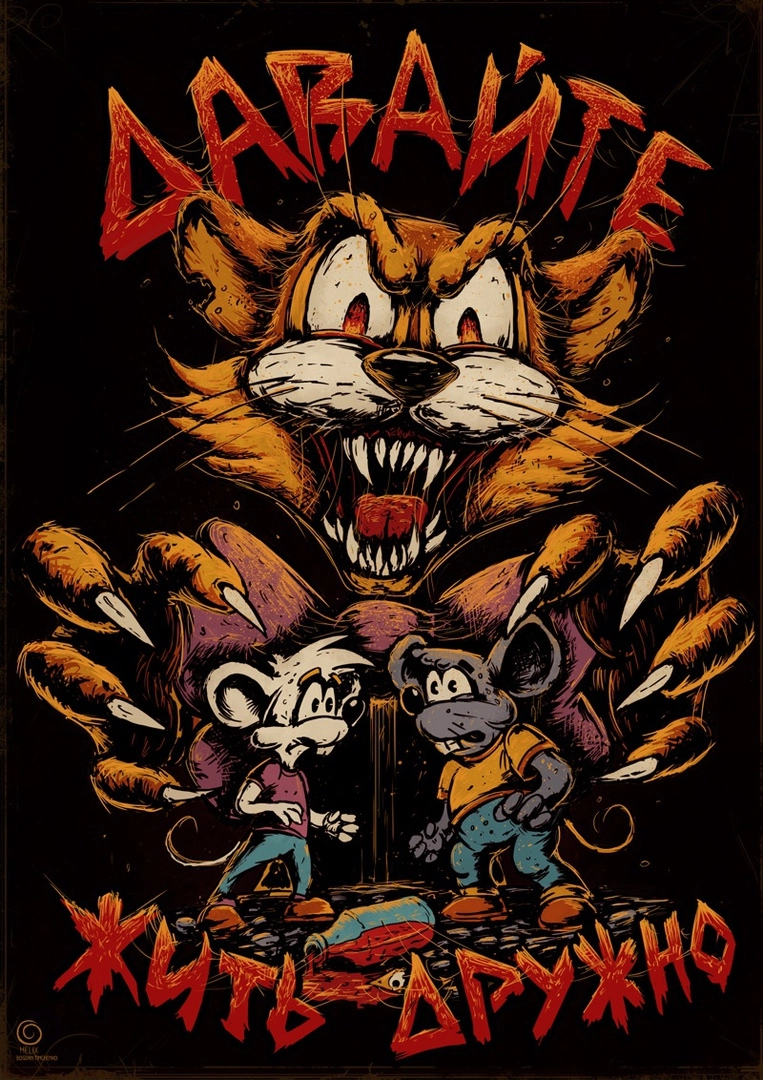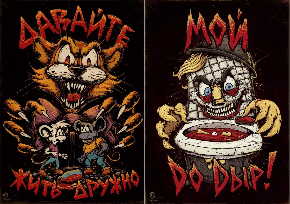 Красноярский художник Богдан Тимченко нарисовал серию работ с героями советских мультиков, которых изобразил суровыми, брутальными бандитами, а некоторых — почти маньяками. Например, Матроскин и Шарик теперь отбиваются от зомби, попугай Кеша увлёкся карате, Винни-Пух и Пятачок вынуждены воевать с пчёлами-убийцами, Чиполлино устраивает кровавый бунт богачам, а кот Леопольд, Мойдодыр и Карлсон стали похожи на персонажей из фильма ужасов.