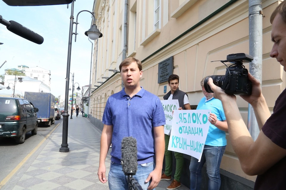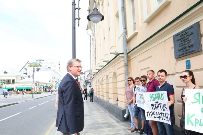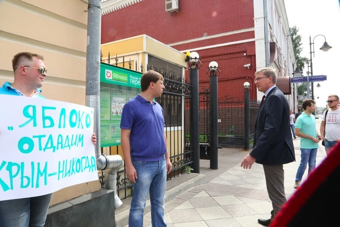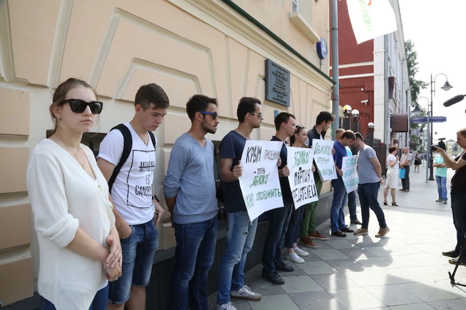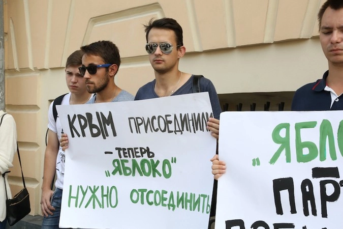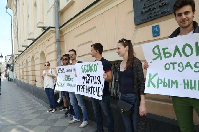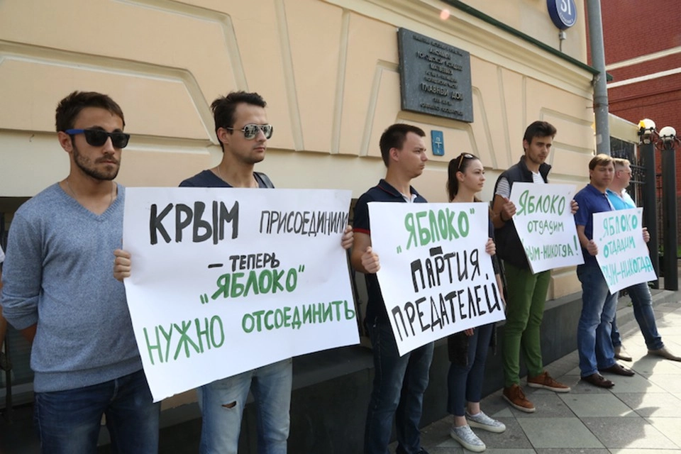 В Москве 19 августа активисты «Молодой гвардии „Единой России“» пикетировали здание общественной приемной партии «Яблоко». Девять активистов требовали от руководства партии перестать тиражировать высказывания о незаконном воссоединении Тавриды с Россией.