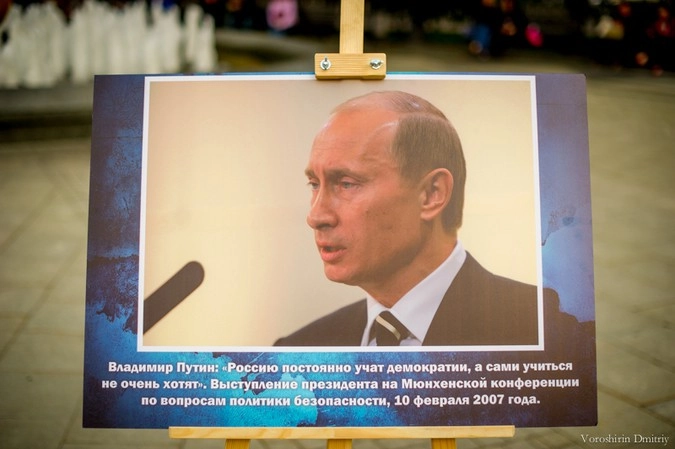 Экспозиция включала в себя несколько стендов, на которых были представлены факты с описанием форм проявления демократии в разных странах. Например, в России голосование является прямым и открытым, а в США существует система непрямых двухступенчатых выборов. За нарушение при проведении публичных акций в России действует наказание в виде штрафов, а в некоторых государствах «просвещенной демократии» за аналогичный проступок можно получить несколько лет тюрьмы и так далее.