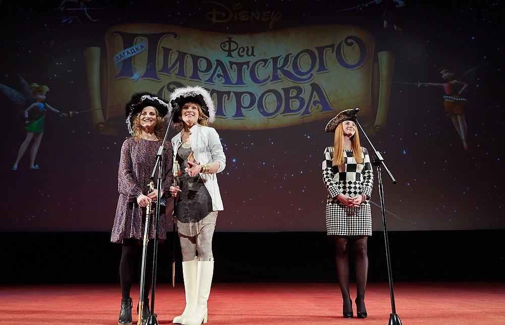 Анна Бегунова (Фея Динь-Динь), Лена Катина (Фея Зарина) и Елена Великанова (Фея Видия) на российской премьере мультфильма «Феи: Загадка Пиратского острова»