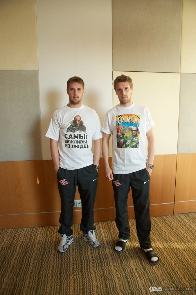 Стильные майки примерили на себя владельцы Арам и Ашот Габреляновы, теннисистка Анна Чакветадзе, игроки московского "Спартака" Дмитрий и Кирилл Комбаровы, Денис Глушаков, хореограф Евгений Папунаишвили, актер Михаил Галустян и модель Ксения Шипилова.