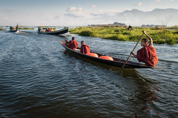 Ничто так не украшает пейзаж в Юго-Восточной Азии, как фигура монаха. Он настолько естественен и вездесущ для этих мест, что даже и не пытайтесь провести съемочный день без его присутствия в кадре. Вот даже в такой глухомани, как озеро Инле монахи – тут как тут, прямо за очередным поворотом.