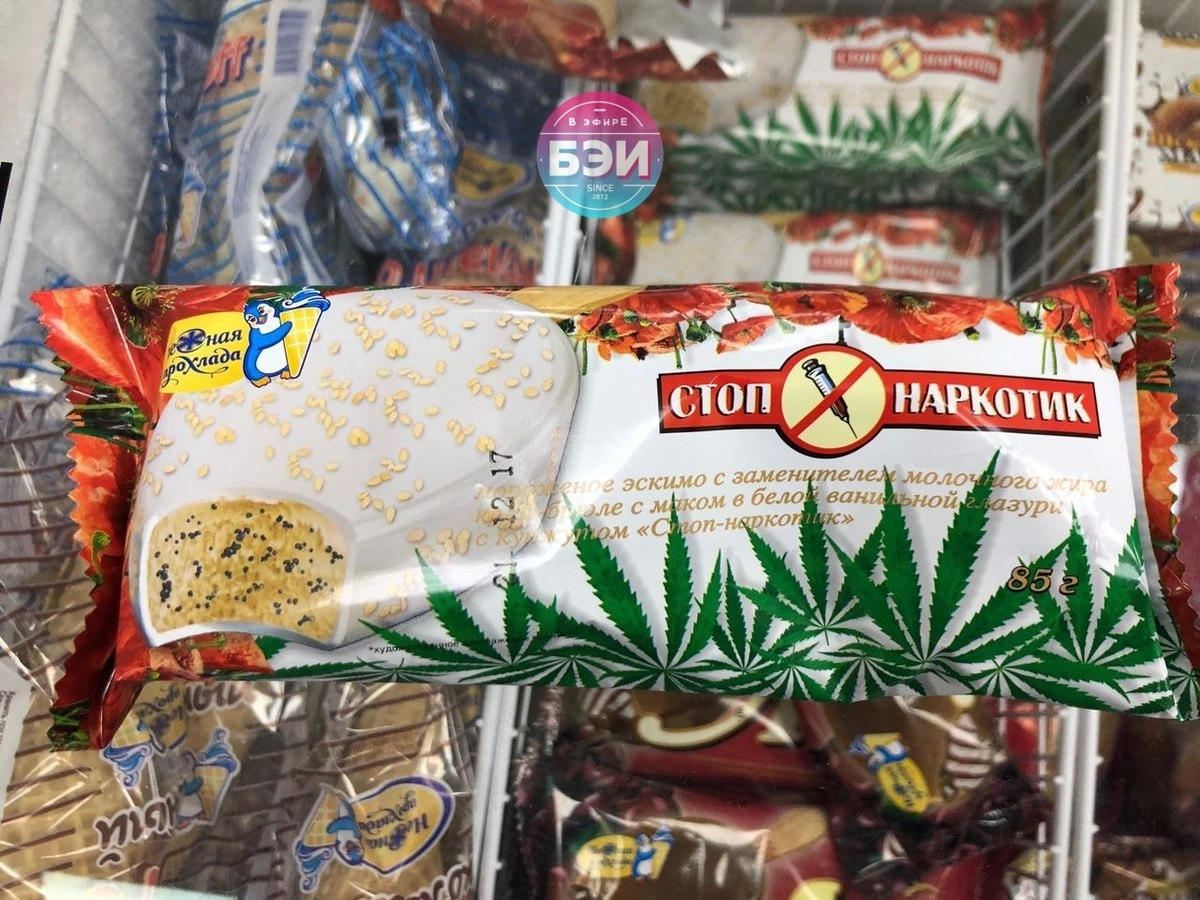 Увидев на упаковке мороженого «Стоп-наркотик» рисунки с изображением конопли и мака, жительница Белгорода очень возмутилась и обратилась с жалобой в городскую администрацию.