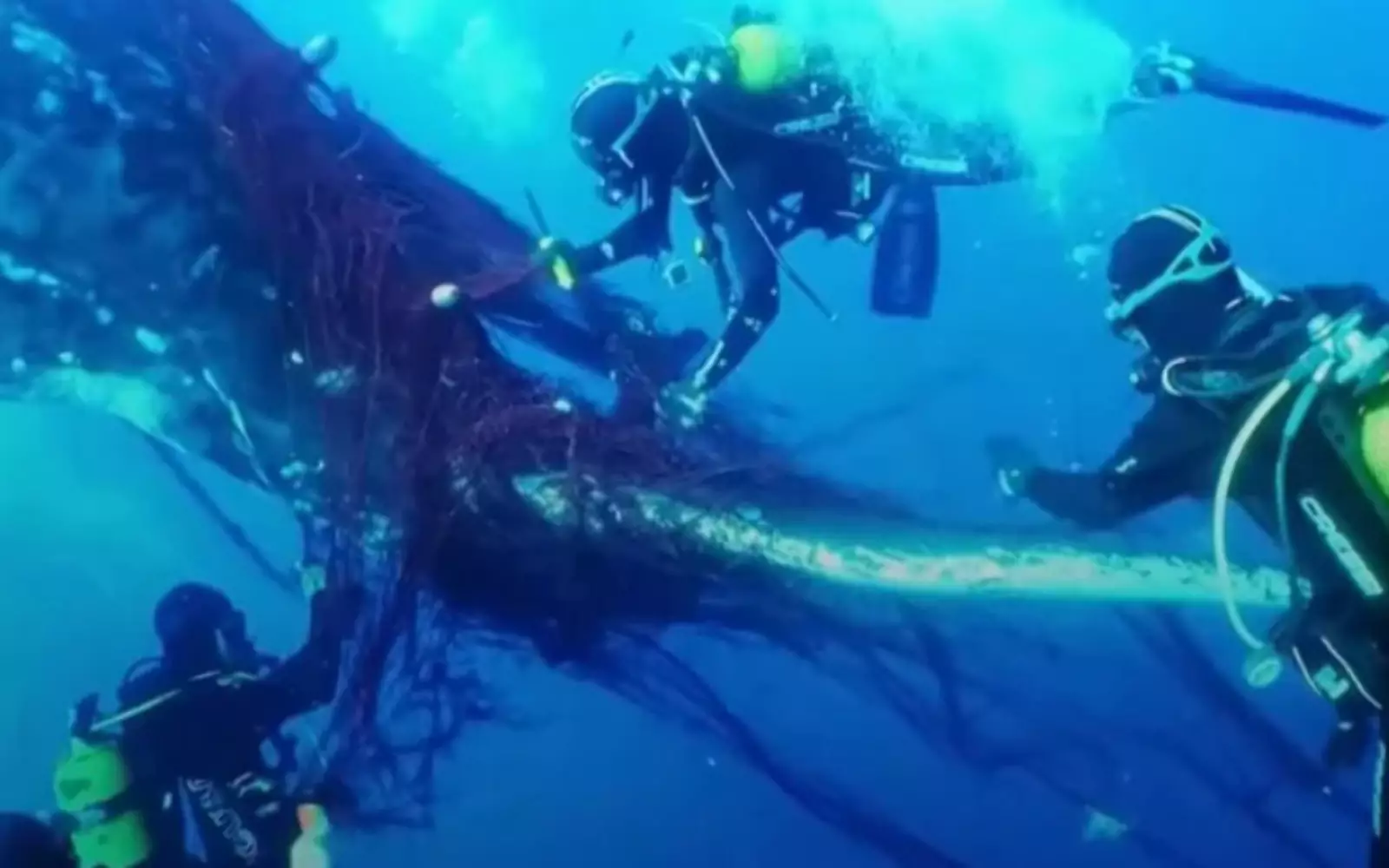 Измученное животное так сильно запуталось в сети, что не могло даже открыть рот, и первые попытки биологов спасти его оказались напрасными. Но вскоре им на помощь прибыли четыре профессиональных дайвера, и они начали осторожно разрезать сеть все вместе, пишет Inspiremore.