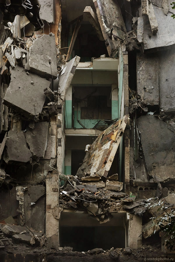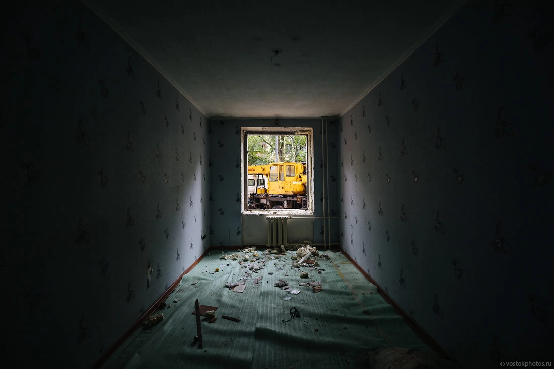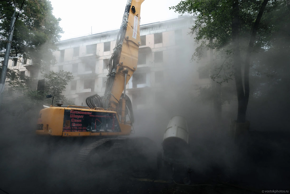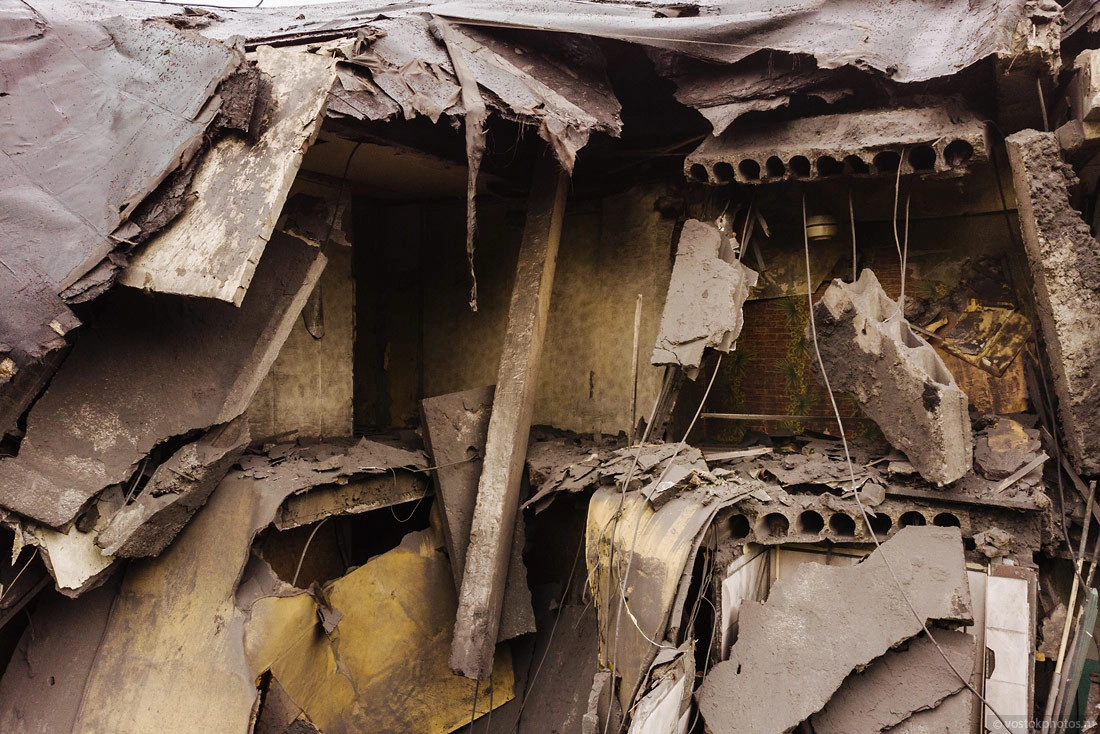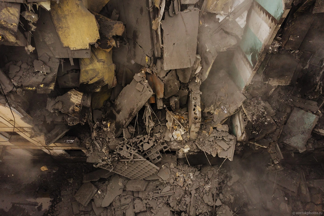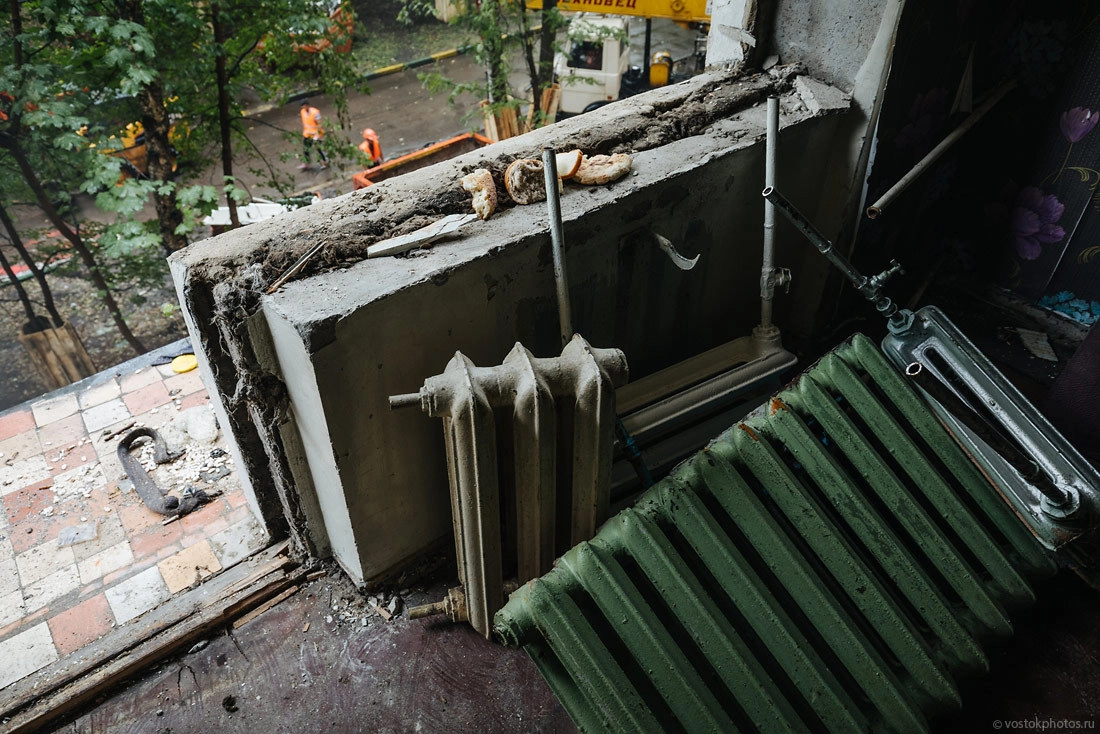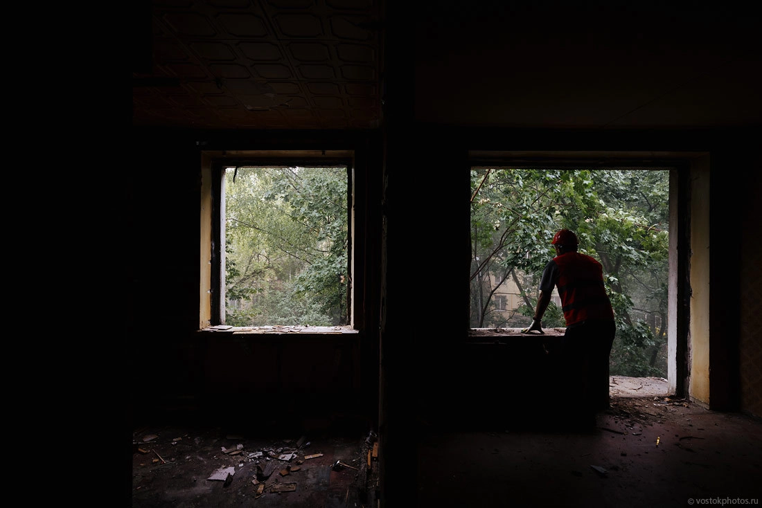 Все показательно красиво. Перед тем как снести жилой дом, его разбирают на комплектующие, оставляя лишь голые стены. Выносят стеклопакеты, весь возможный металл (решетки, двери, ванные