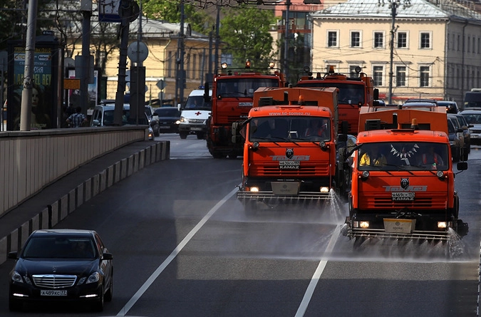 Колонна поливальных машин на Садовом кольце в Москве. © Евгений Биятов/РИА Новости