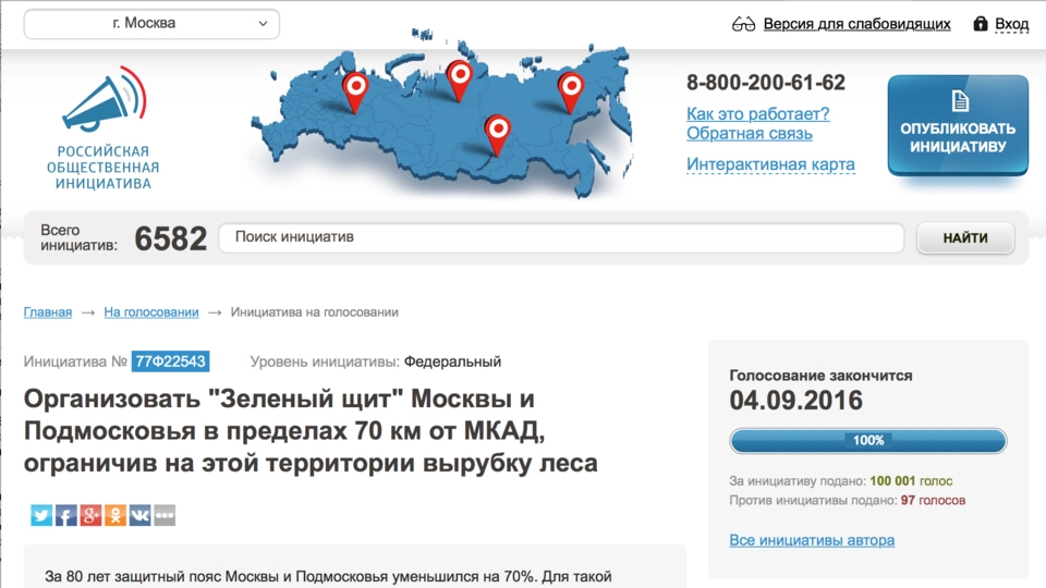 Особняком стоят экологические инициативы московского отделения «Единой России». В конце августасовместно с Общероссийским народным фронтом столичные единороссы инициировали еще один крупный проект — «Зеленый пояс Москвы». С помощью жителей московских округов и экспертами-экологами были определены территории, особо охраняемые законом.
