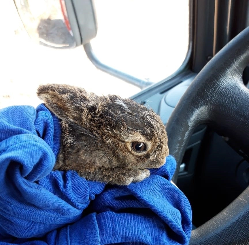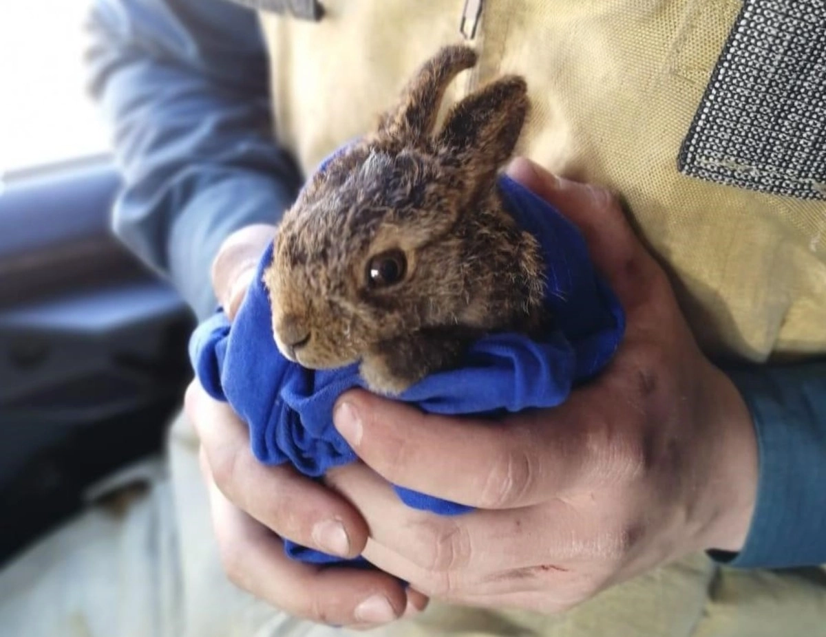 Московские пожарные спасли зайчонка во время тушения травы в Южном Бутово. Зверька полили водой, завернули в мягкую ткань и привезли в пожарную часть.