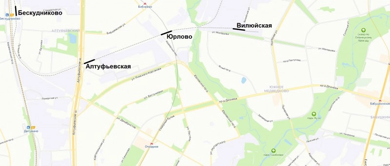 Грузовая Медведковская ветка фактически разрезает жилые районы. Вы сами можете увидеть, что с Юрловского проезда и улицы Римского-Корсакова что до метро «Отрадное», что до «Бибирево» Серпуховско-Тимирязевской линии добираться пешком долго, а в последнем случае путь лежит через промзону и не всякий пешеход его преодолеет.