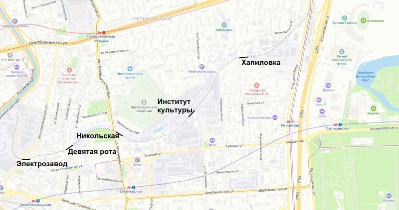 Платформа Никольская, названная так в честь Никольского единоверческого монастыря, разместится на пересечении подъездного пути с Измайловским валом. Снова с двух сторон сложившаяся жилая застройка.